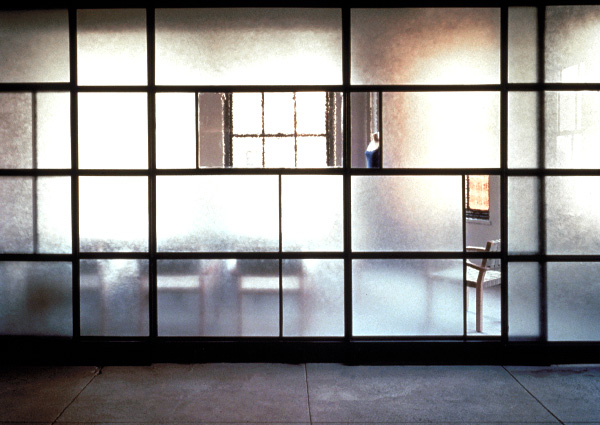 Ms. Fisher is known for using striking natural materials and incorporating their essential qualities in her garments, from how a fabric drapes to the layering of different translucent materials. Building upon this idea, steel casement windows, cast-iron radiators and concrete floors of the original building were exposed, recognizing the inherent qualities of the building. The existing building core was stripped back and reconfigured as a dense agglomeration of infrastructural elements, and the excavated perimeter spaces, organized by a moveable translucent wall and scrim panels, were left as containers of controlled light, creating an industrial loft space.