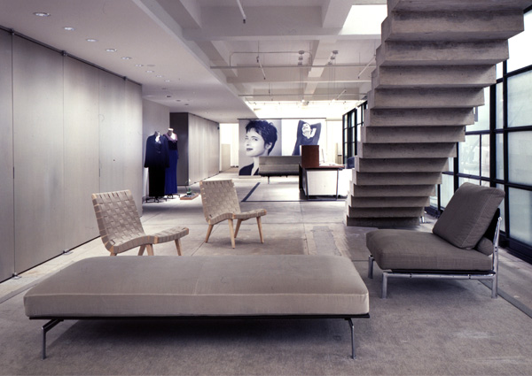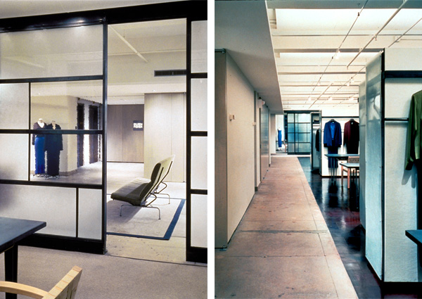 CDR Studio worked closely with the client to implement an environmentally conscious palette of durable, recycled materials that are rich in texture and finish. The relationship between clothing display and lighting was critical to the success of the project. Technically, CDR Studio developed a layered lighting system mixing halogen and fluorescent lamps to create a wider visible color range. Flexibility and specificity regarding the illumination needs of the varied programmatic areas called for intensive coordination of the building systems. The new showroom has greatly improved productivity and morale for Ms. Fisher’s core staff. Day-lighting and natural ventilation have saved the client thousands of dollars in operational costs. The showroom imparts a sense of dignity and purpose; it gives architectural form to Eileen Fisher Inc.
