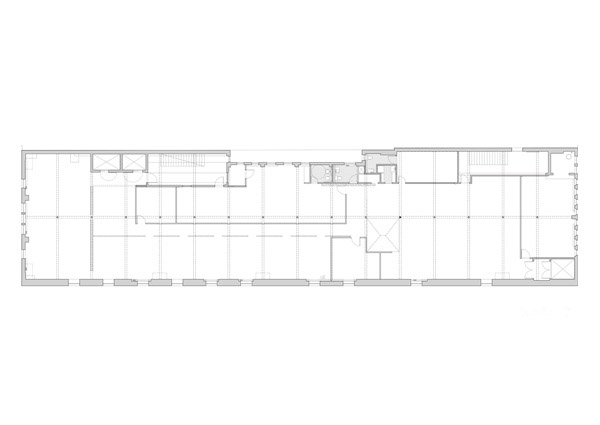 Proenza Schouler, a company that designs a high-end line of women’s apparel, was founded in 2002 by Lazaro Hernandez and Jack McCollough. The firm’s name is derived from the designers’ mothers’ maiden names. The clothing they create is tailored, neutral and well detailed; it is inspired by such minimal artists as Donald Judd. Their new Office + Showroom is located on the top floor of a turn-of-the-century cast-iron building in SoHo. The program includes a showroom, sales area, administrative office area, atelier room for the production of samples, production area for pattern making and detailing, design area for clothing and accessories and the main design studio.